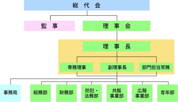 | 理事会 | 組合員より選出された理事により構成される、組合の業務執行機関。 |